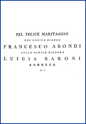 | Pel felice maritaggio del nobile signor Francesco Abondi colla nobile signora Luigia Baroni sonetto |
