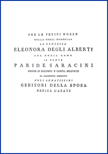 | Per le felici nozze della nobil donzella la contessa Eleonora degli Alberti col nobil uomo il conte Paride Saracini signor di Molveno e Castel Belforte il seguente sonetto |