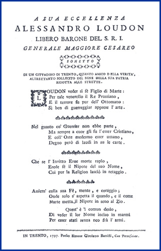 | A sua eccellenza Alessandro Loudon libero barone del S.R.I. generale maggiore cesareo sonetto di un cittadino di Trento, quanto amico della verità, altrettanto sollecito del bene della sua patria ridotta alle strette |