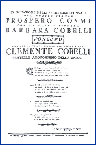 | In occasione delli felicissimi sponsali del nobile signor Prospero Cosmi con la nobile signora Barbara Cobelli sonetto |