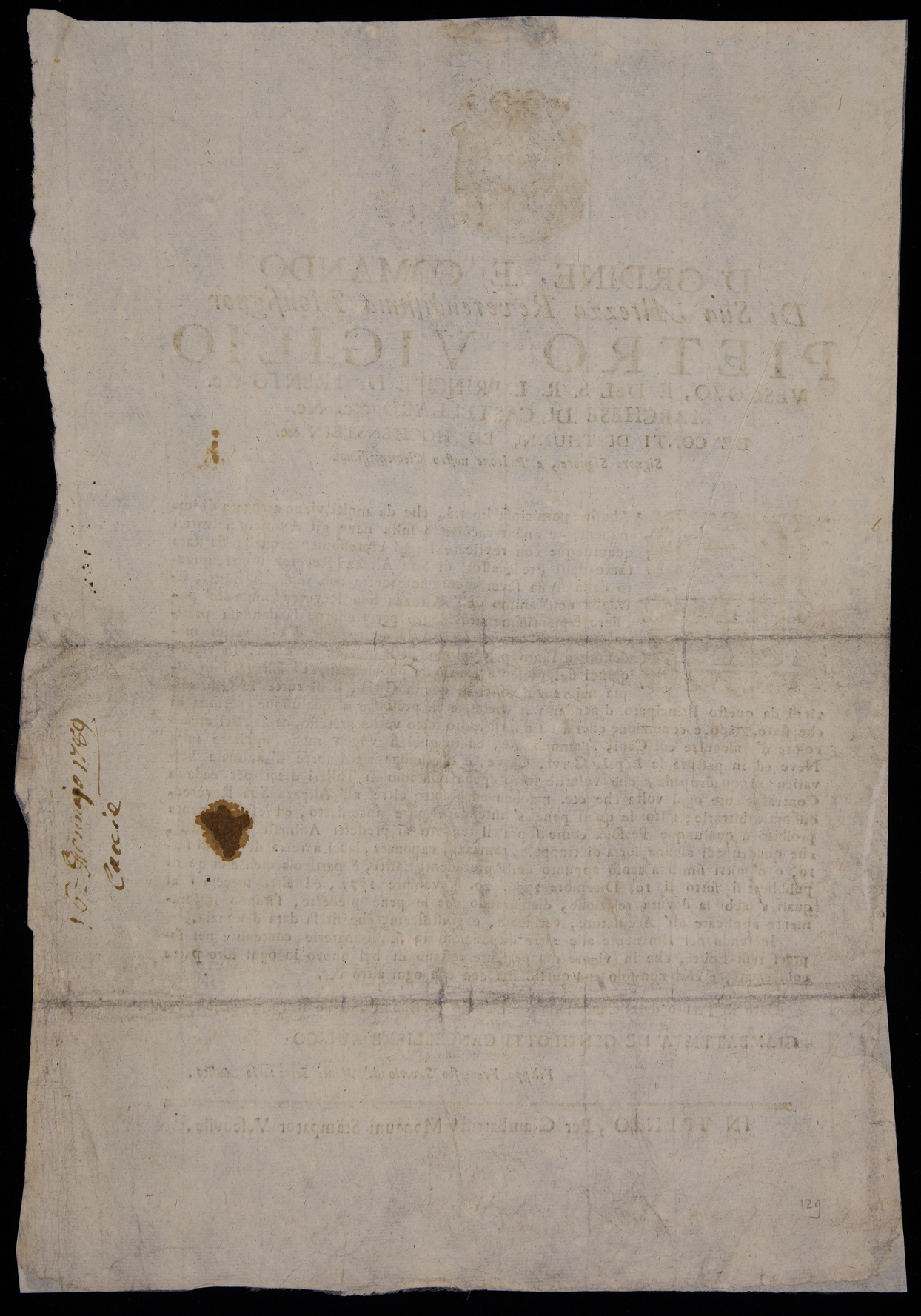 D'ordine, e comando di sua altezza reverendissima monsignor Pietro Vigilio...
