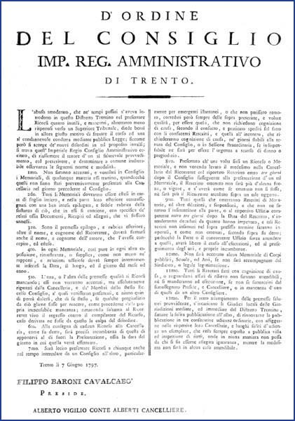 D'ordine del Consiglio Imp. Reg. amministrativo di Trento