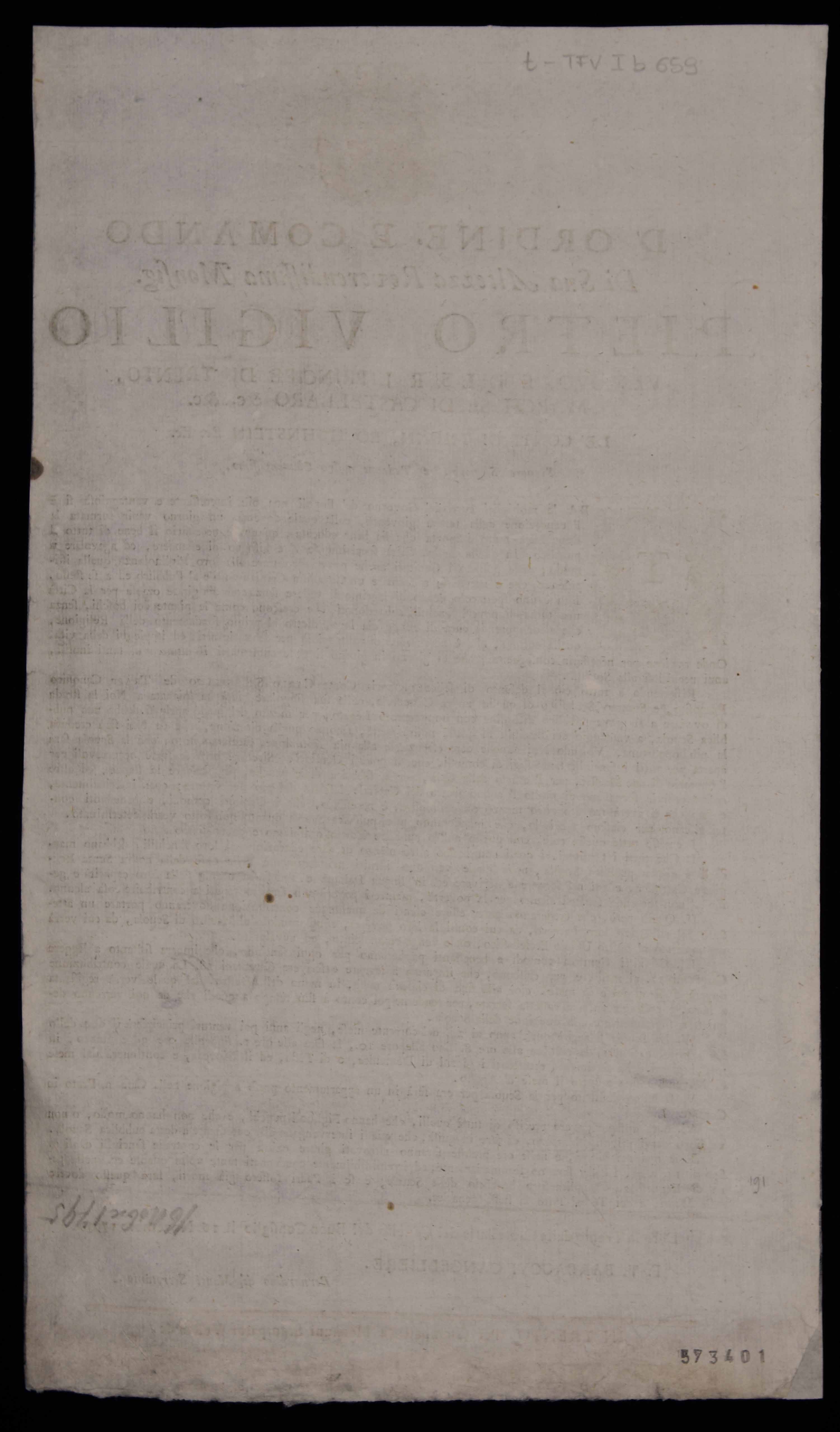 | D'ordine, e comando di sua altezza reverendissima monsig. Pietro Vigilio vescovo, e del S.R.I. principe di Trento, marchese di Castellaro &c. &c. de' conti di Thunn, ed Hohnstein ec. ec. signore signore, e padrone nostro clementissimo |