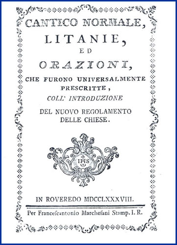 | Cantico normale, litanie, ed orazioni, che furono universalmente prescritte, coll'introduzione del nuovo regolamento delle chiese |