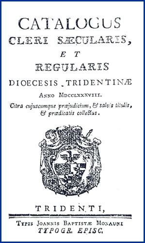 | Catalogus cleri saecularis, et regularis dioecesis Tridentinae anno MDCCLXXXVIII. citra cujuscumque praejudicium, & salvis titulis, & praedicatis collectus |