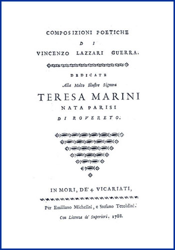 LV, [1] p. Dedica dell'autore a Teresa Parisi Marini. Rovereto, 24 agosto 1788