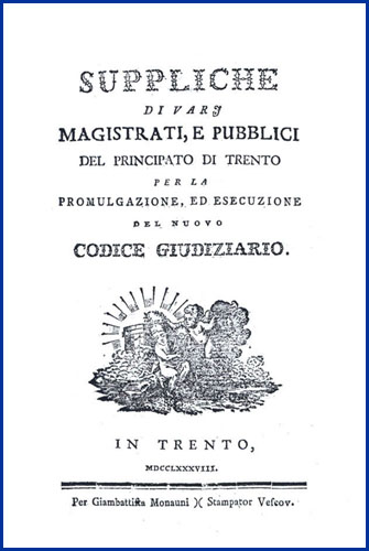 | Suppliche di varj magistrati, e pubblici del principato di Trento per la promulgazione, ed esecuzione del nuovo codice giudiziario |