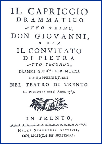 | Il capriccio drammatico atto primo, Don Giovanni, o sia il convitato di pietra atto secondo, drammi giocosi per musica da rappresentarsi nel teatro di Trento la primavera dell'anno 1789. |