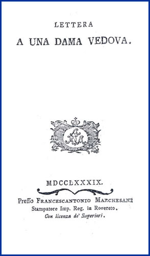 15, [1] p. Nome dell'autore dalla dedica a Elisabetta Contarini Mosconi. Verona, 5 dicembre 1788