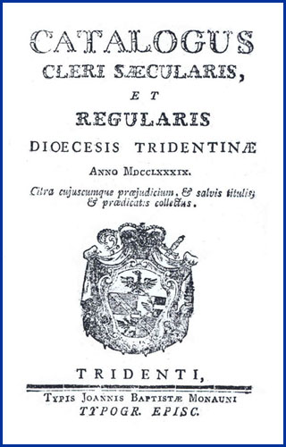 | Catalogus cleri saecularis, et regularis dioecesis Tridentinae anno MDCCLXXXIX. citra cujuscumque praejudicium, & salvis titulis; & praedicatis collectus |