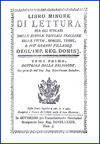 | Libro minore di lettura per gli scolari delle scuole triviali italiane nelle città, borghi, terre, e più grandi villaggj degl'imp. reg. dominj. Tomo primo. Dottrina della religione |