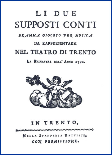 | Li due supposti conti dramma giocoso per musica da rappresentarsi nel teatro di Trento la primavera dell'anno 1792. |