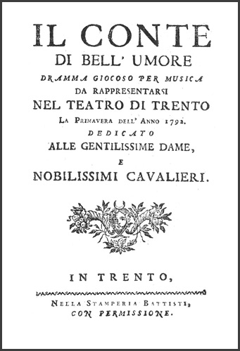 | Il conte di bell'umore dramma giocoso per musica da rappresentarsi nel teatro di Trento la primavera dell'anno 1792. |
