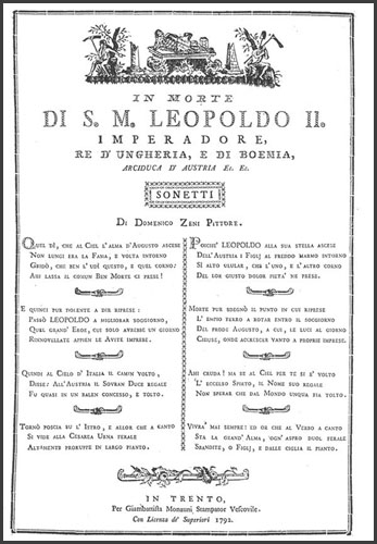 | In morte di s.m. Leopoldo II. imperadore, re d'Ungheria, e di Boemia, arciduca d'Austria ec. ec. sonetti |