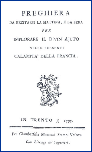 | Preghiera da recitarsi la mattina, e la sera per implorar il divin ajuto nelle presenti calamità della Francia |