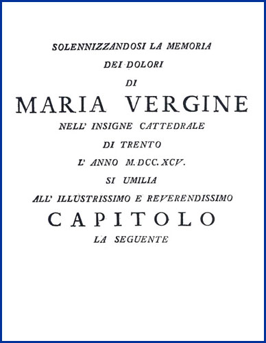 | Solennizzandosi la memoria dei dolori di Maria Vergine nell'insigne cattedrale di Trento l'anno M.DCC.XCV. |