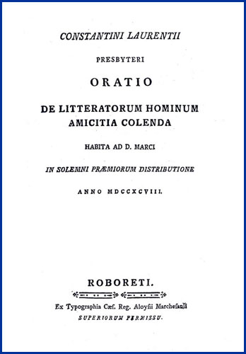 | Oratio de litteratorum hominum amicitia colenda habita ad D. Marci in solemni praemiorum distributione anno MDCCXCVIII. |