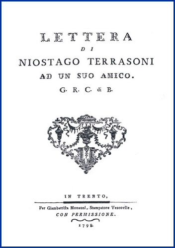 | Lettera di Niostago Terrasoni ad un suo amico G.R.C. di B. |
