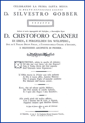 | Celebrando la prima santa messa il molto reverendo signor d. Silvestro Gobber sonetto |