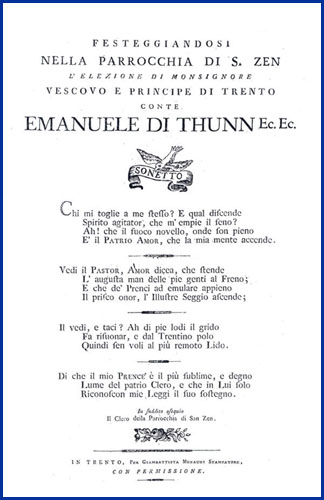| Festeggiandosi nella parrocchia di S. Zen l'elezione di monsignore vescovo e principe di Trento conte Emanuele di Thunn ec. ec. sonetto |
