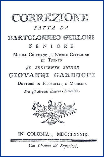 | Correzione fatta da Bartolommeo Gerloni seniore medico-chirurgo, e nobile cittadino di Trento al sedicente signor Giovanni Garducci dottore in filosofia, e medicina fra gli Arcadi Sincero-Intrepido |