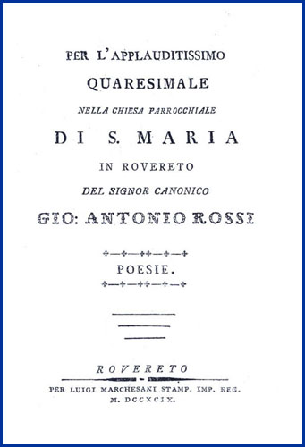 | Per l'applauditissimo quaresimale nella chiesa parrocchiale di S. Maria in Rovereto del signor canonico Gio: Antonio Rossi poesie |