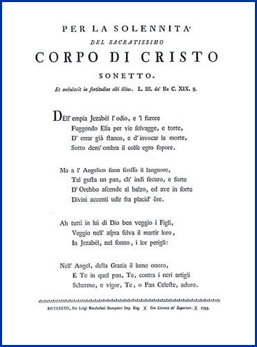 | Per la solennità del sacratissimo corpo di Cristo sonetto |