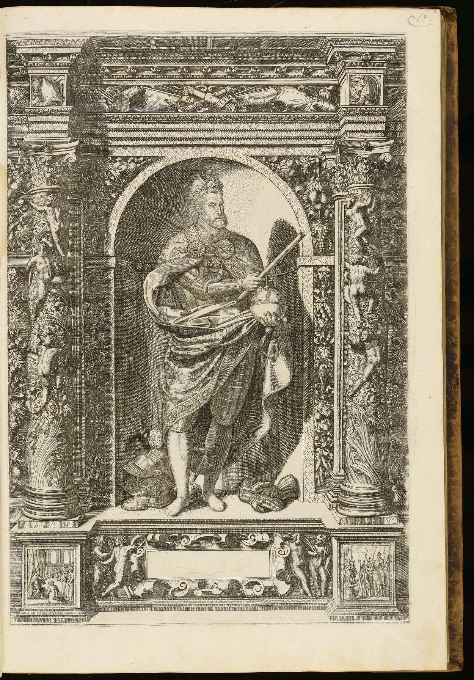 Calcografia; 422x286 mm; in Jacob Schrenck, Augustissimorum imperatorum, serenissimorum regum, atque archiducum, illustrissimorum principum ... verissimae imagines, Innsbruck, Johann Agricola, 1601