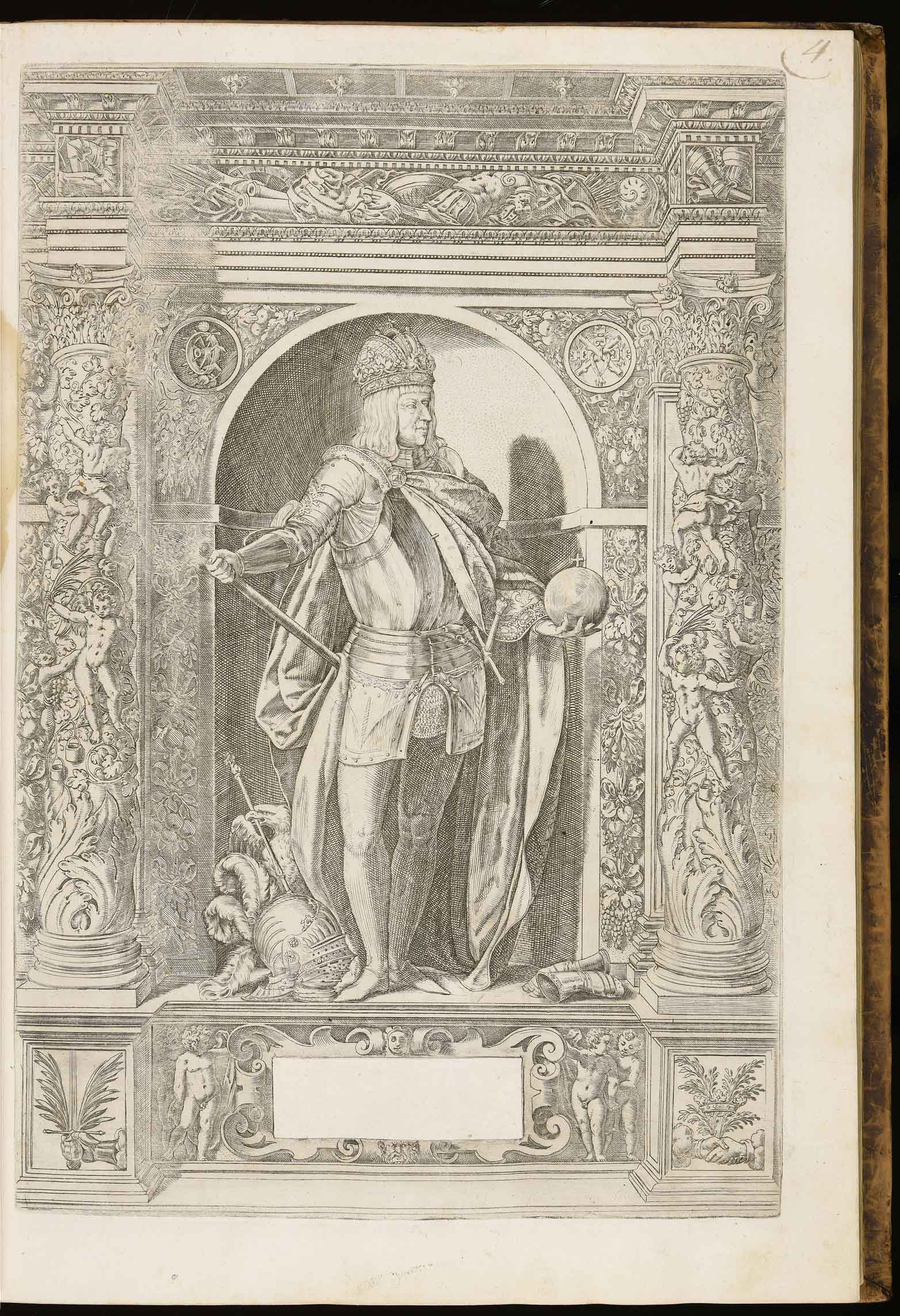 Calcografia; 427x283 mm; in Jacob Schrenck, Augustissimorum imperatorum, serenissimorum regum, atque archiducum, illustrissimorum principum ... verissimae imagines, Innsbruck, Johann Agricola, 1601