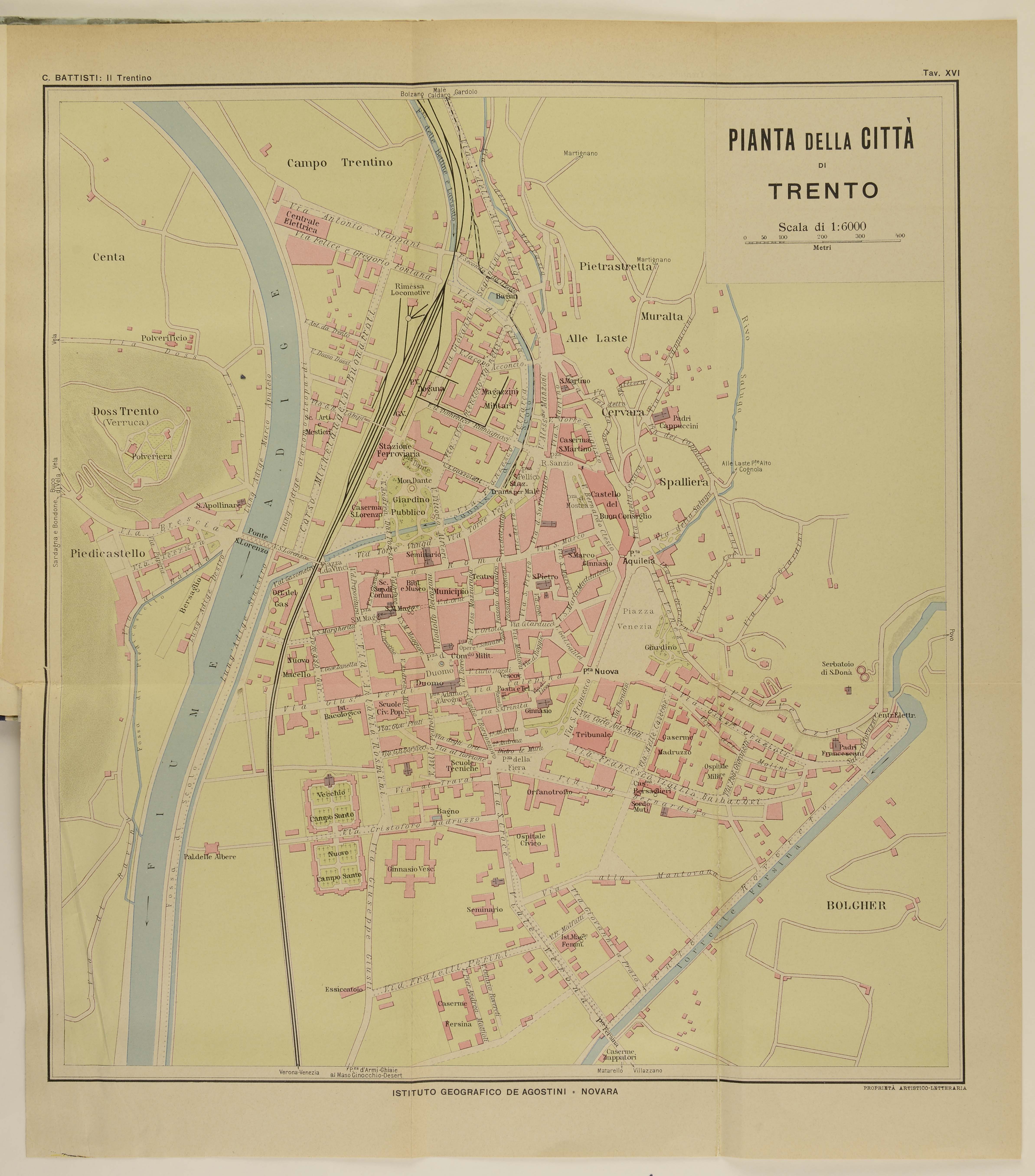 35x32 cm; scala 1:6.000; in Cesare Battisti, Il Trentino cenni geografici, storici, economici, con un'appendice su l'Alto Adige, Novara, Istituto geografico De Agostini, 1915