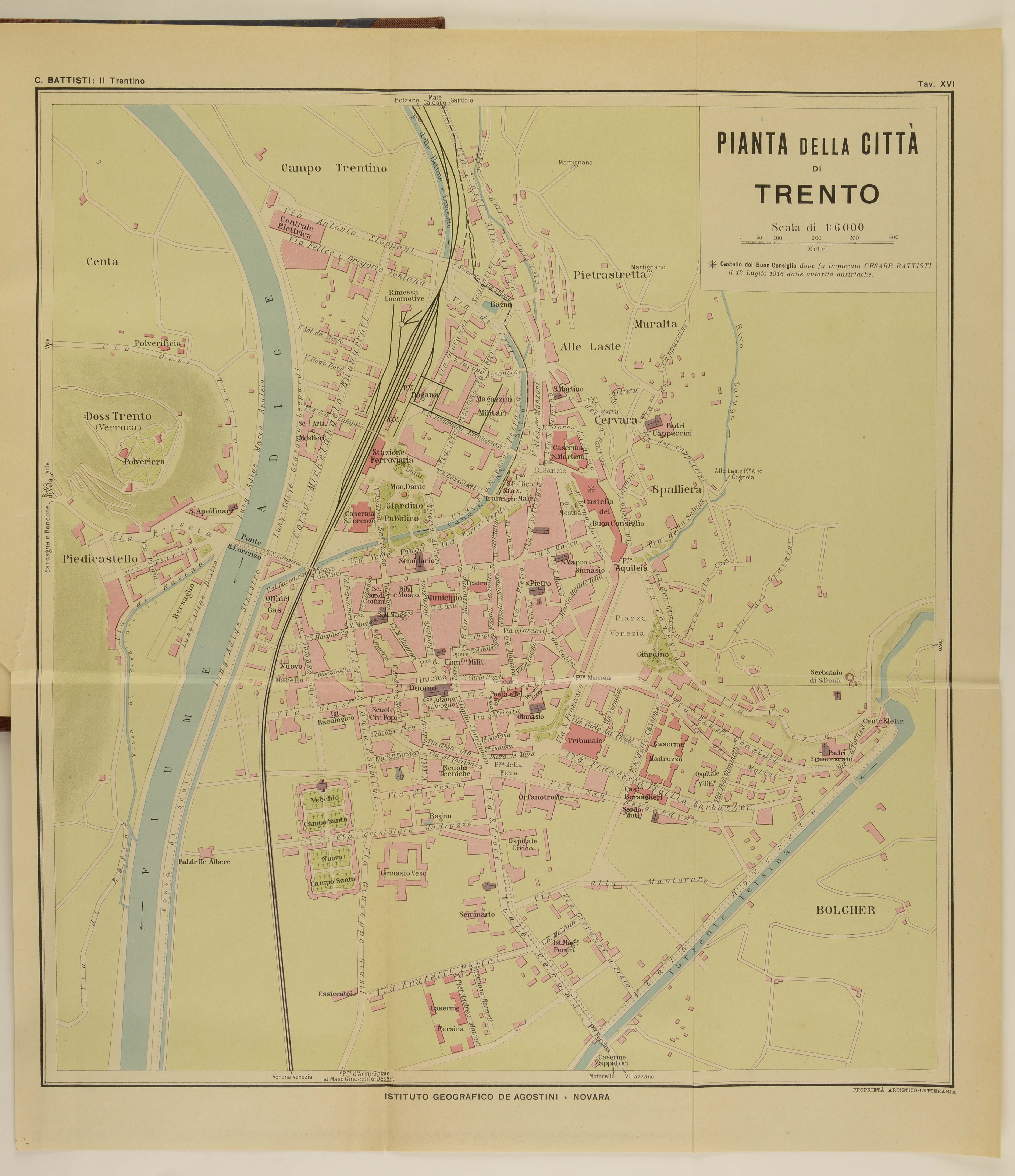 35x32 cm; scala 1:6.000; in Cesare Battisti, Il Trentino cenni geografici, storici, economici, con un'appendice su l'Alto Adige, Novara, Istituto geografico De Agostini, 1917