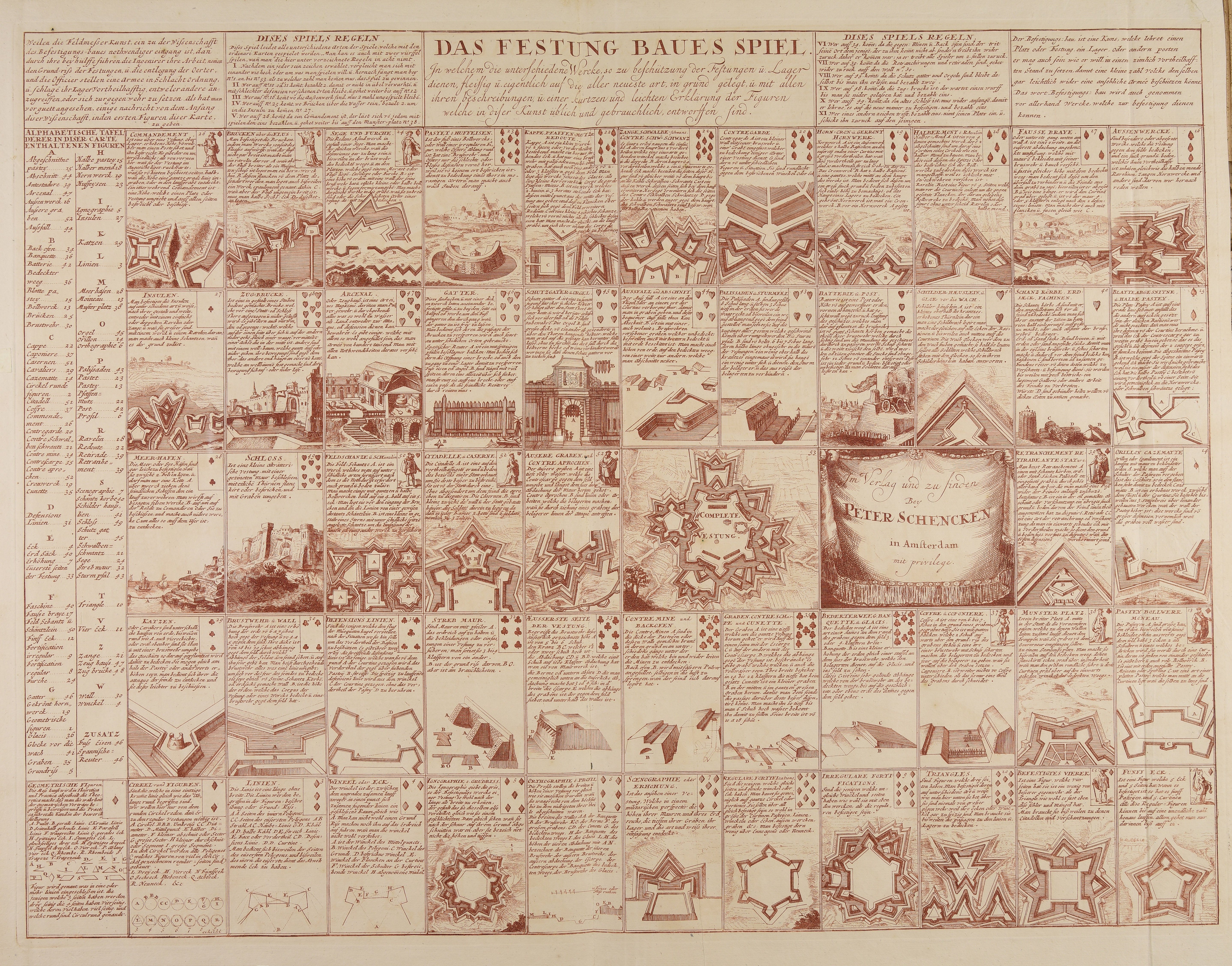 | Das Festung Baues Spiel : in welchem die unterschiedene Wercke, so zu beschützung der Festungen und Lager dienen, fleissig und eigentlich auf die aller neueste art, in grund gelegt, und mit allen ihren beschreibungen und einer kurtzen und leichten |