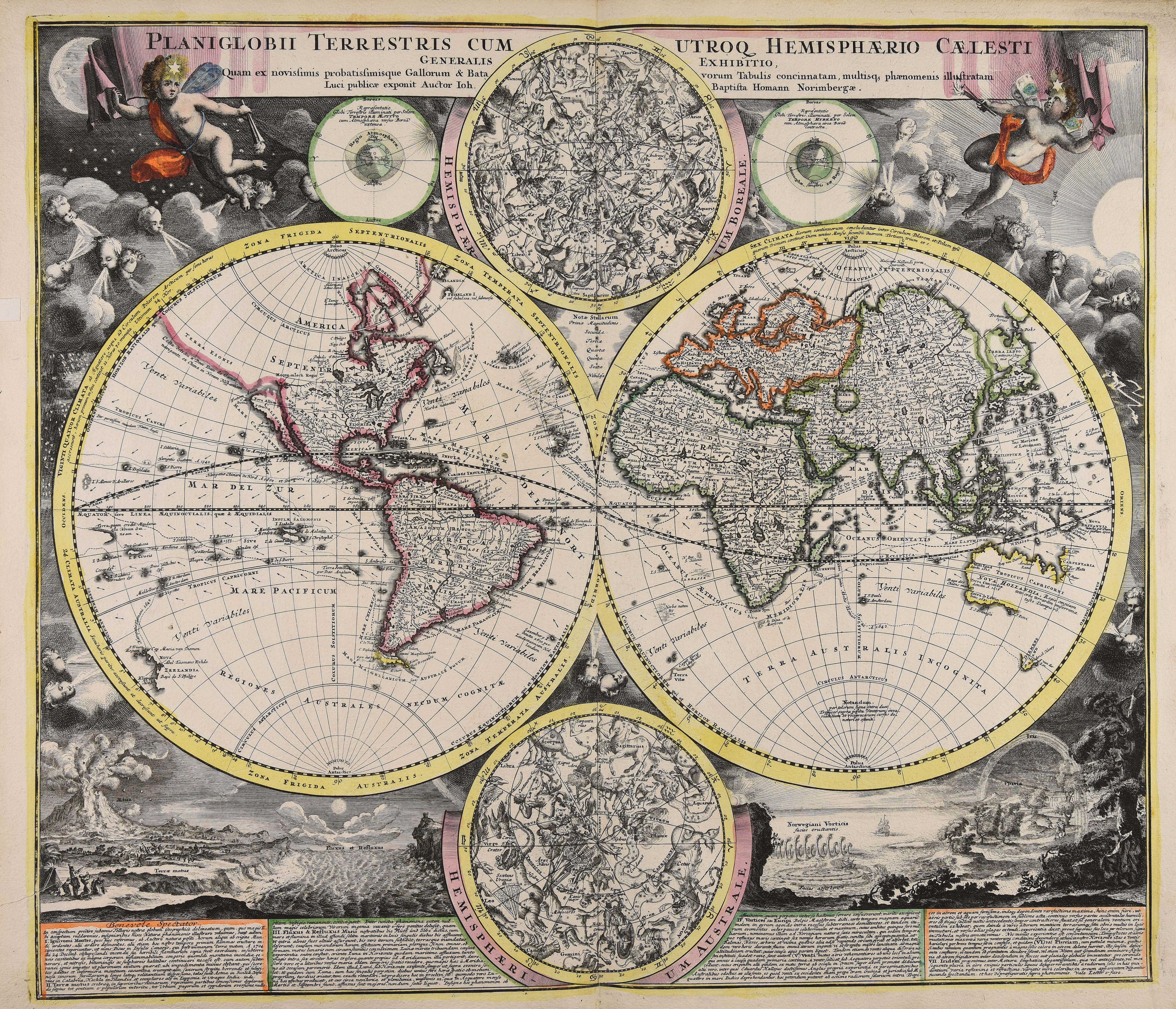 | Planiglobii terrestris cum utroq. hemisphaerio caelesti generalis exhibitio quam ex novissimis probatissimisque Gallorum & Batavorum tabulis concinnatam multisque phaenomenis illustratam luci publicae exponit |