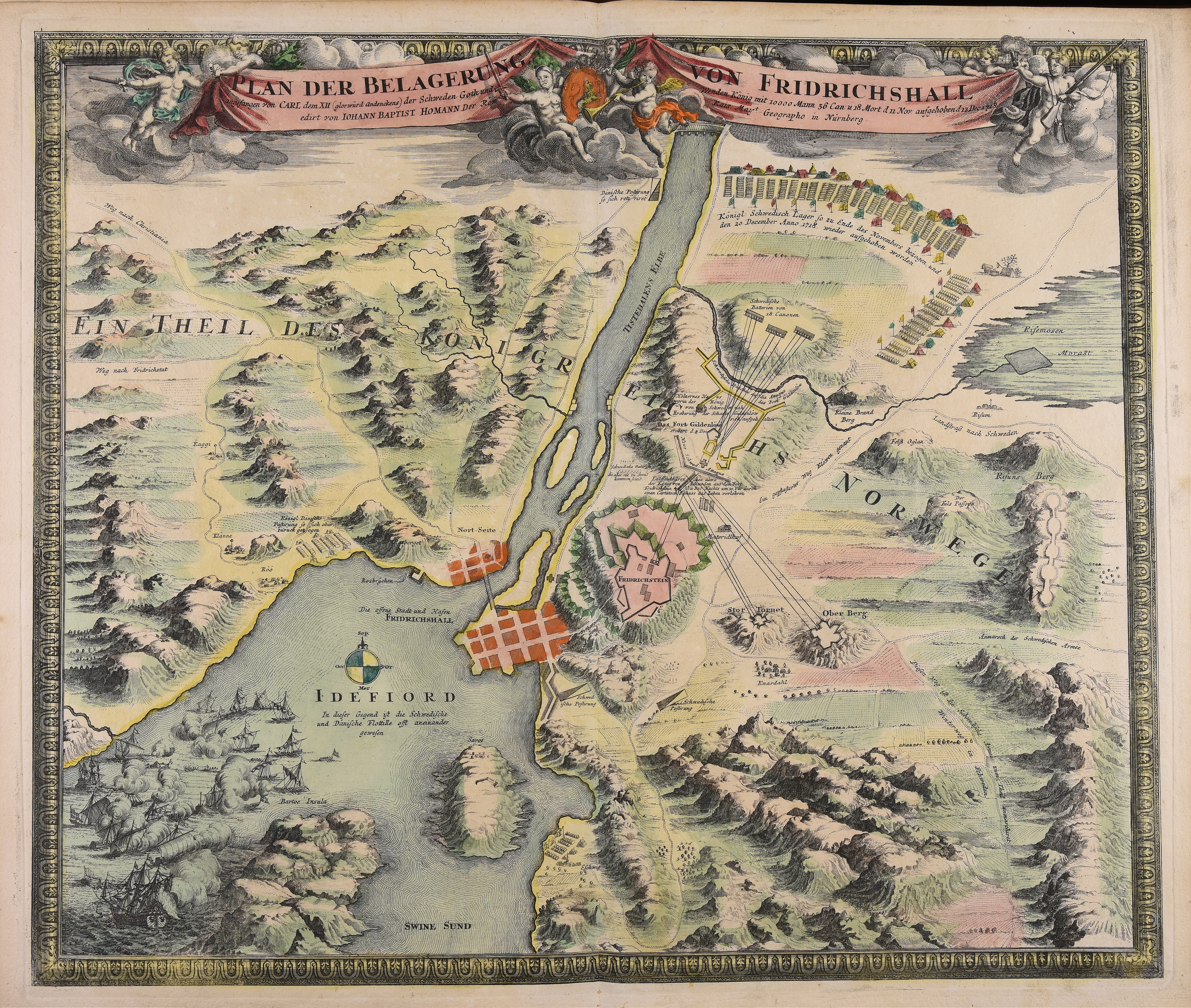 | Plan der Belagerung von Fridrichshall angefangen von Carl dem XII (glorwürd Andenckens) der Schweden Goth und wenden König mit 10000 Mann 36 Can. u. 18 Mort. d. 11 Nov. aufgehoben d. 12 Dec. 1718 |