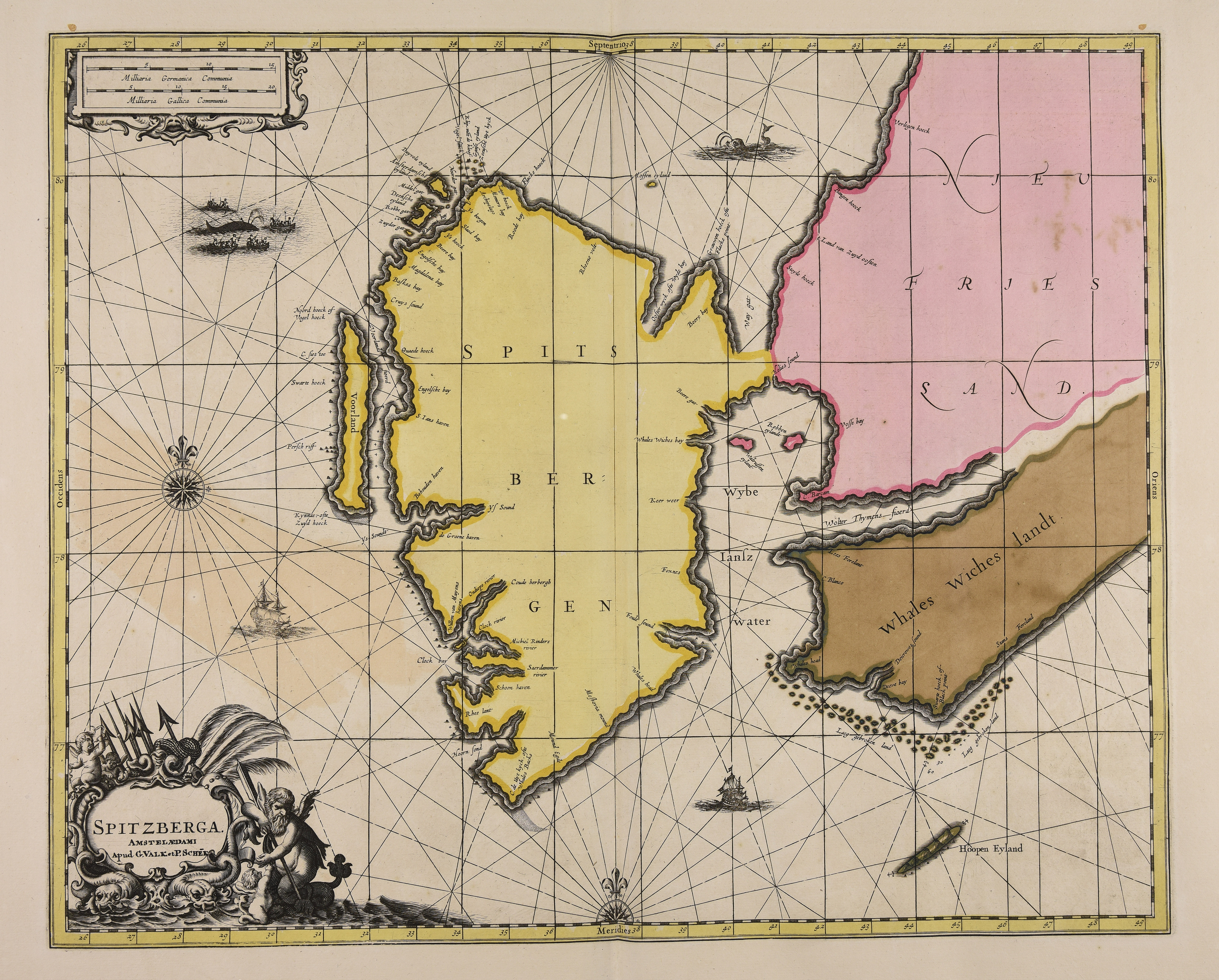 Calcografia; 404x501 mm; scala 1:1.340.000; pubblicata nel 1710 circa; (Cfr. Peter van der Krogt, Koeman's atlantes neerlandici, 't Goy-Houten, HES, 1997, vol. 5, in corso di pubblicazione)