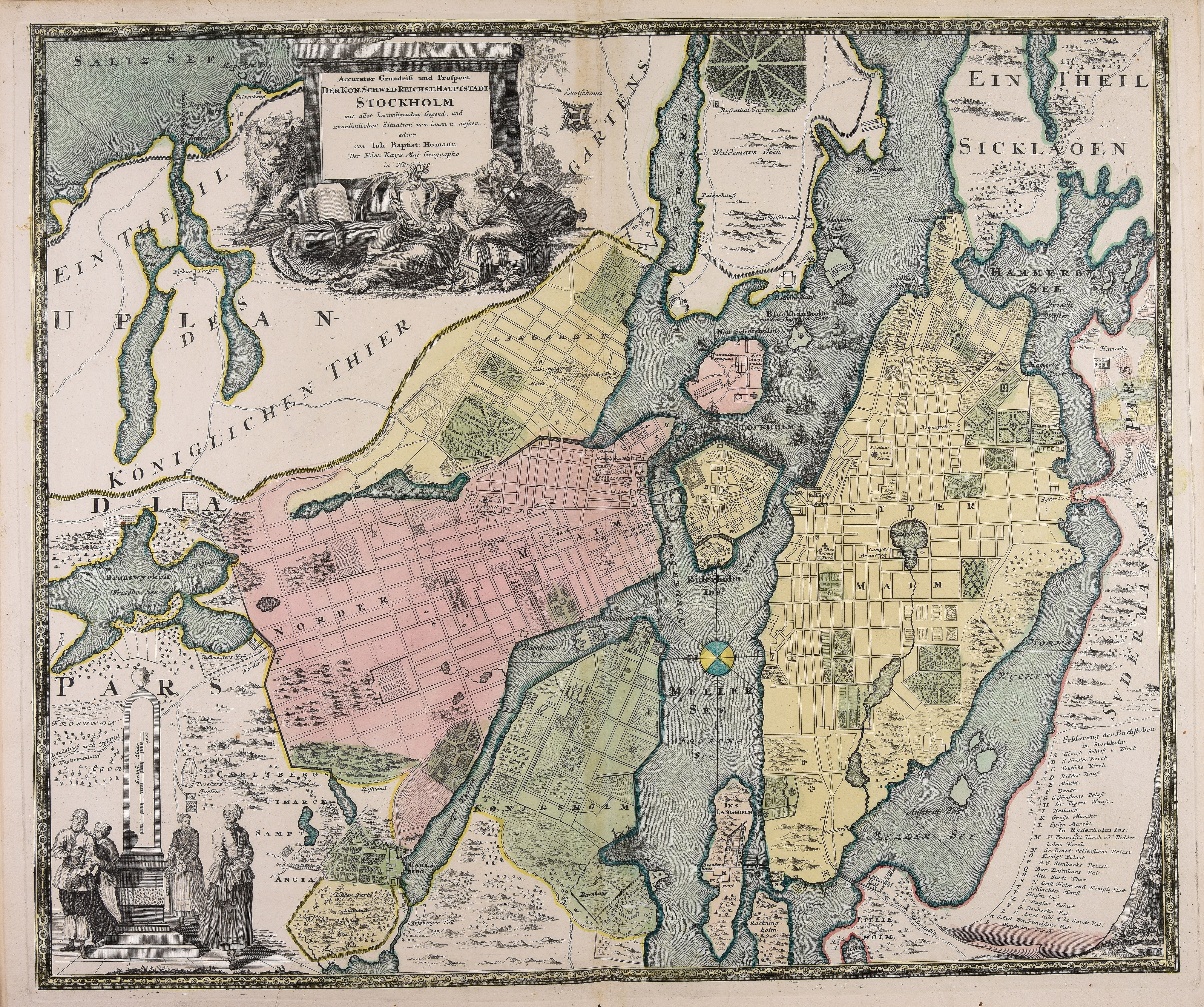 | Accurater Grundriss und Prospect der Kön. Schwed.-Reichs u. Hauptstadt Stockholm mit aller herumligenden Gegend und annehmlicher Situation von innen u. aussen |