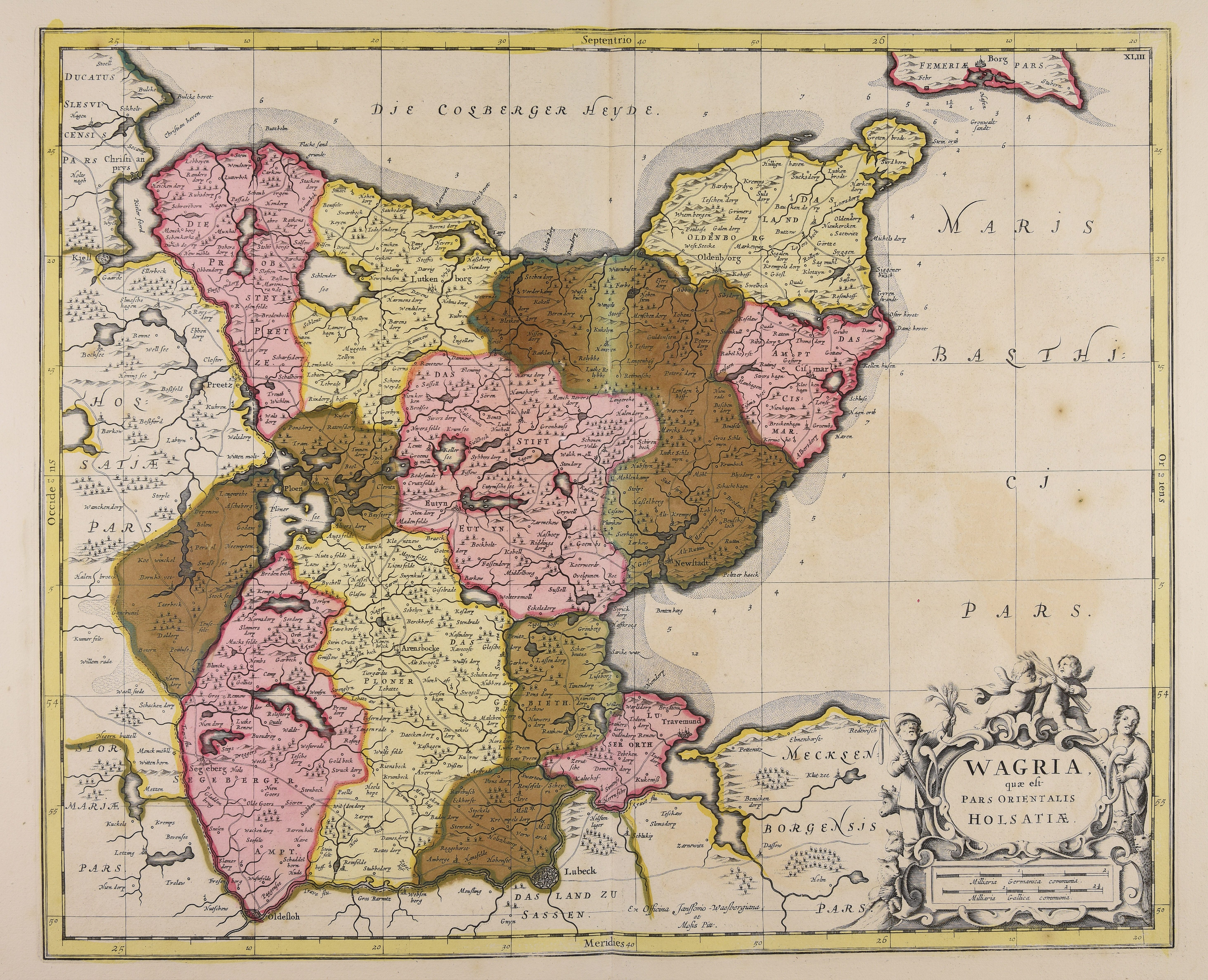 Calcografia; 432x532 mm; scala 1:180.000; pubblicata in The English Atlas, Oxford, London, Moses Pitt e Oxford, Amsterdam, Johannes Janssonius van Waesbergen, Steven Swart, 1680, vol. 1; (Cfr. Peter van der Krogt, Koeman's atlantes neerlandici, 't Goy-Houten, HES, 1997, vol. 1, p. 470 (36))