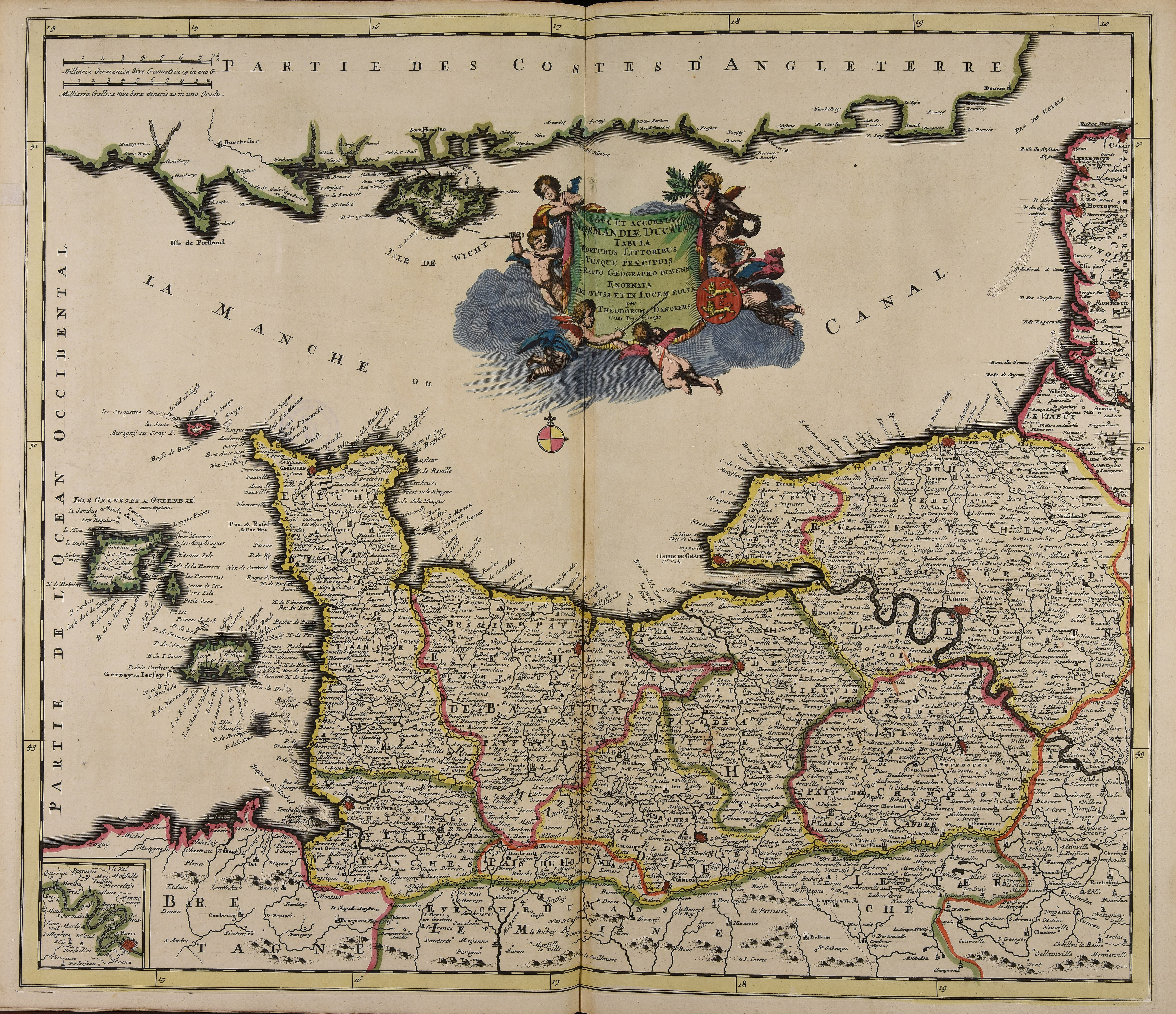 | Nova et accurata Normandiae ducatus tabula portubus littoribus viisque praecipuis a regio geographo dimensis exornata aeri incisa et in lucem edita |