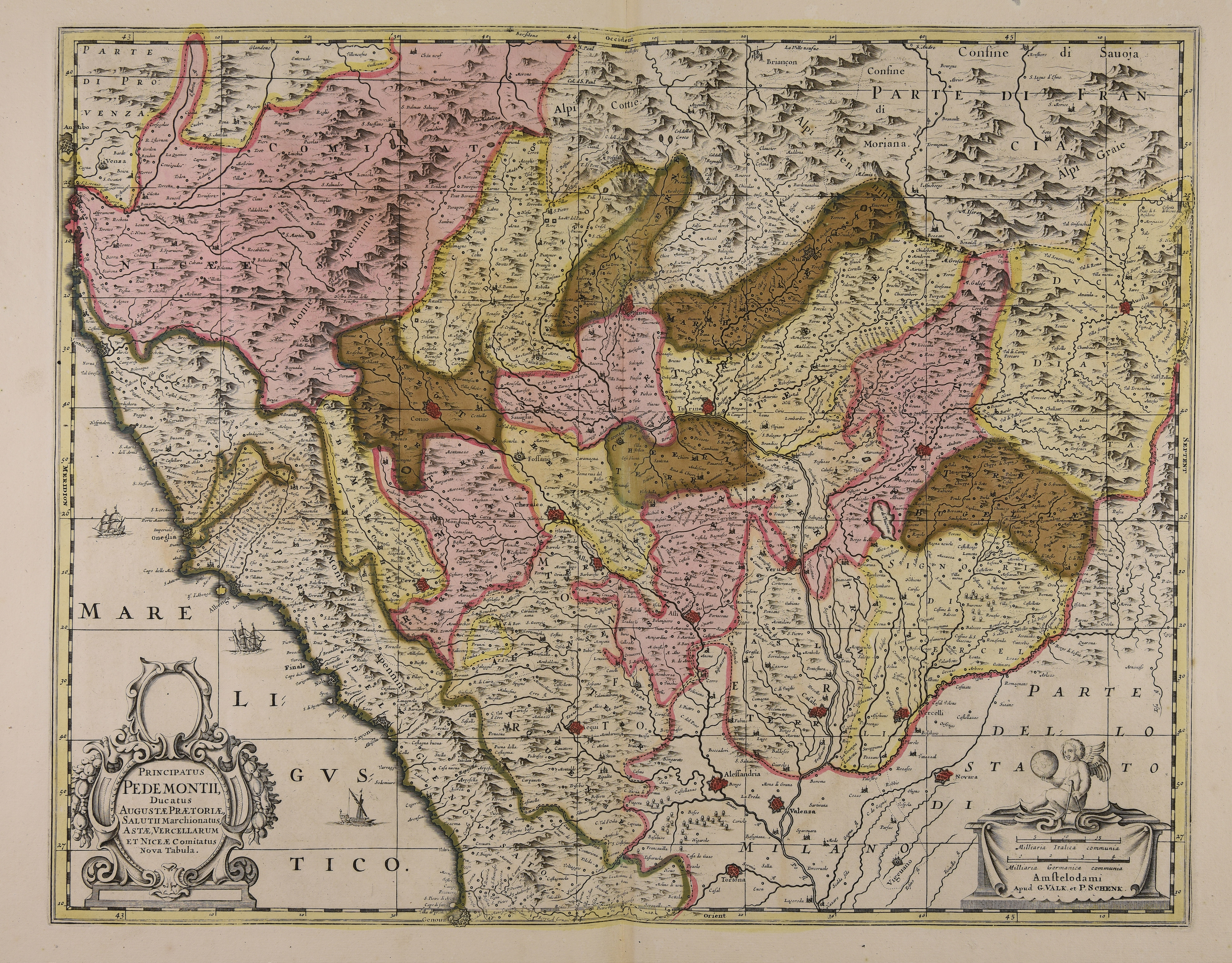 | Principatus Pedemontii, ducatus Augustae Praetoriae, Salutii marchionatus, Astae, Vercellarum et Niceae comitatus nova tabula |