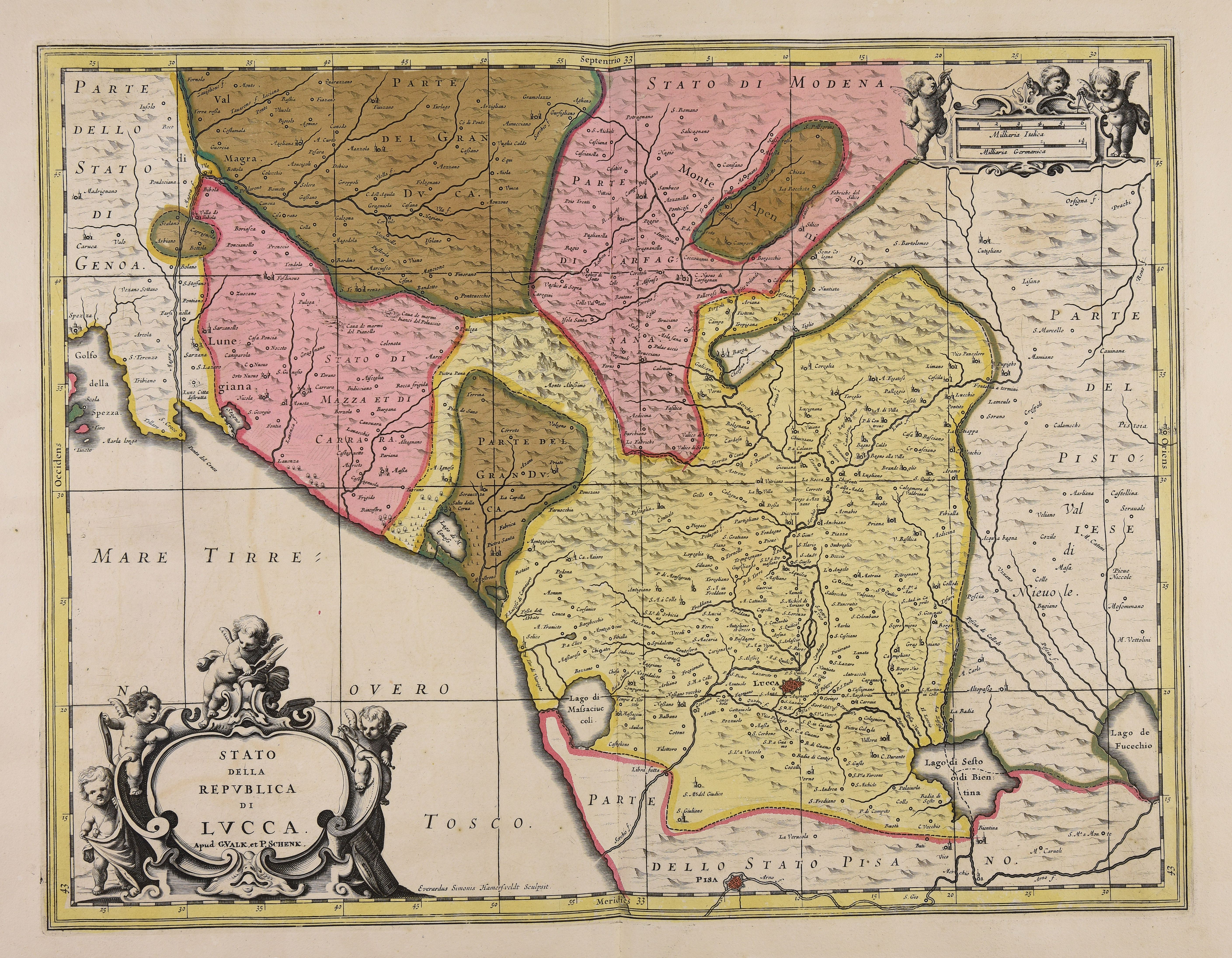 Calcografia; 374x488 mm; scala 1:200.000; pubblicata nel 1709 circa; (Cfr. Peter van der Krogt, Koeman's atlantes neerlandici, 't Goy-Houten, HES, 1997, vol. 5, in corso di pubblicazione)