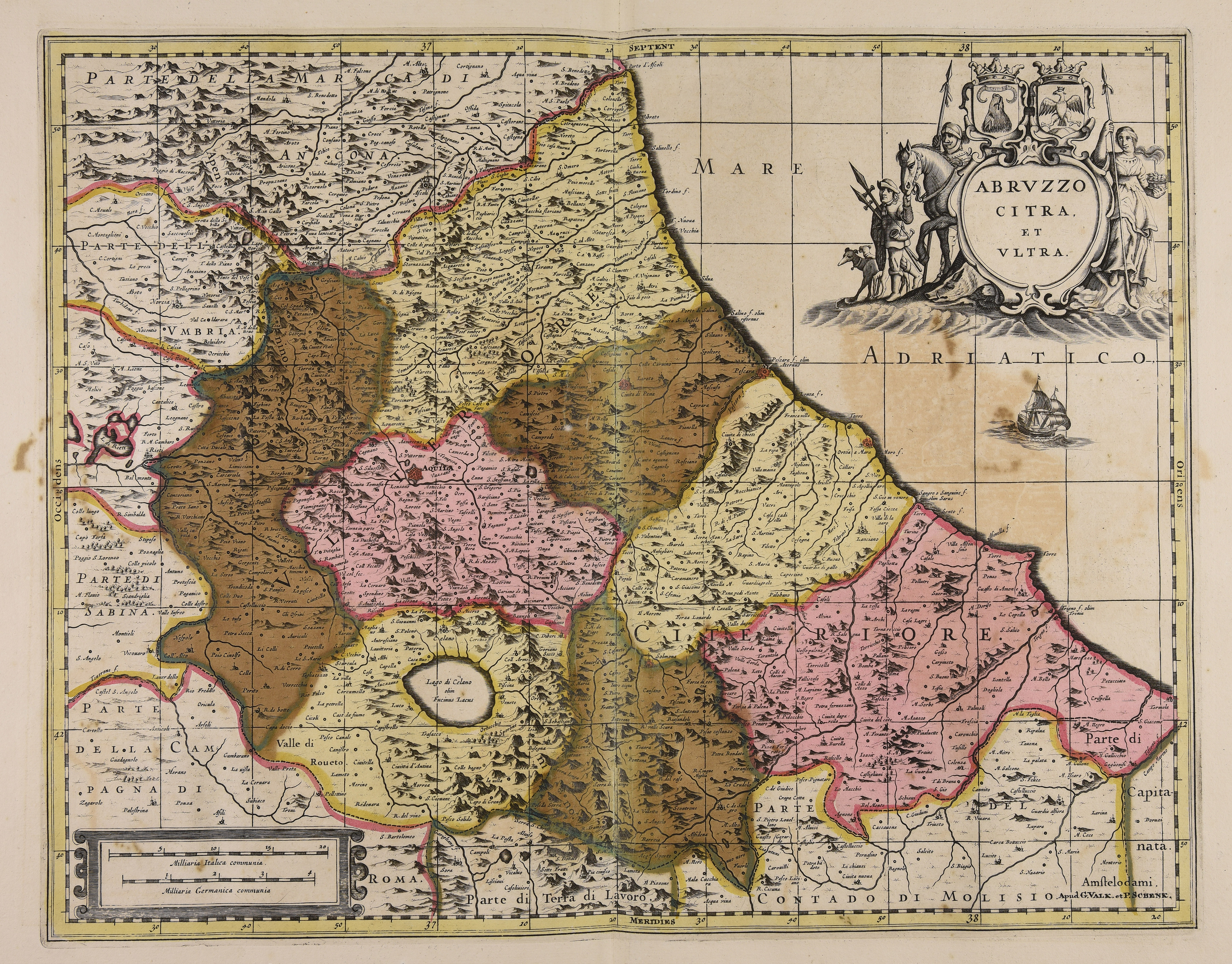 Calcografia; 372x476 mm; scala 1:410.000; pubblicata nel 1710 circa; (Cfr. Peter van der Krogt, Koeman's atlantes neerlandici, 't Goy-Houten, HES, 1997, vol. 5, in corso di pubblicazione)
