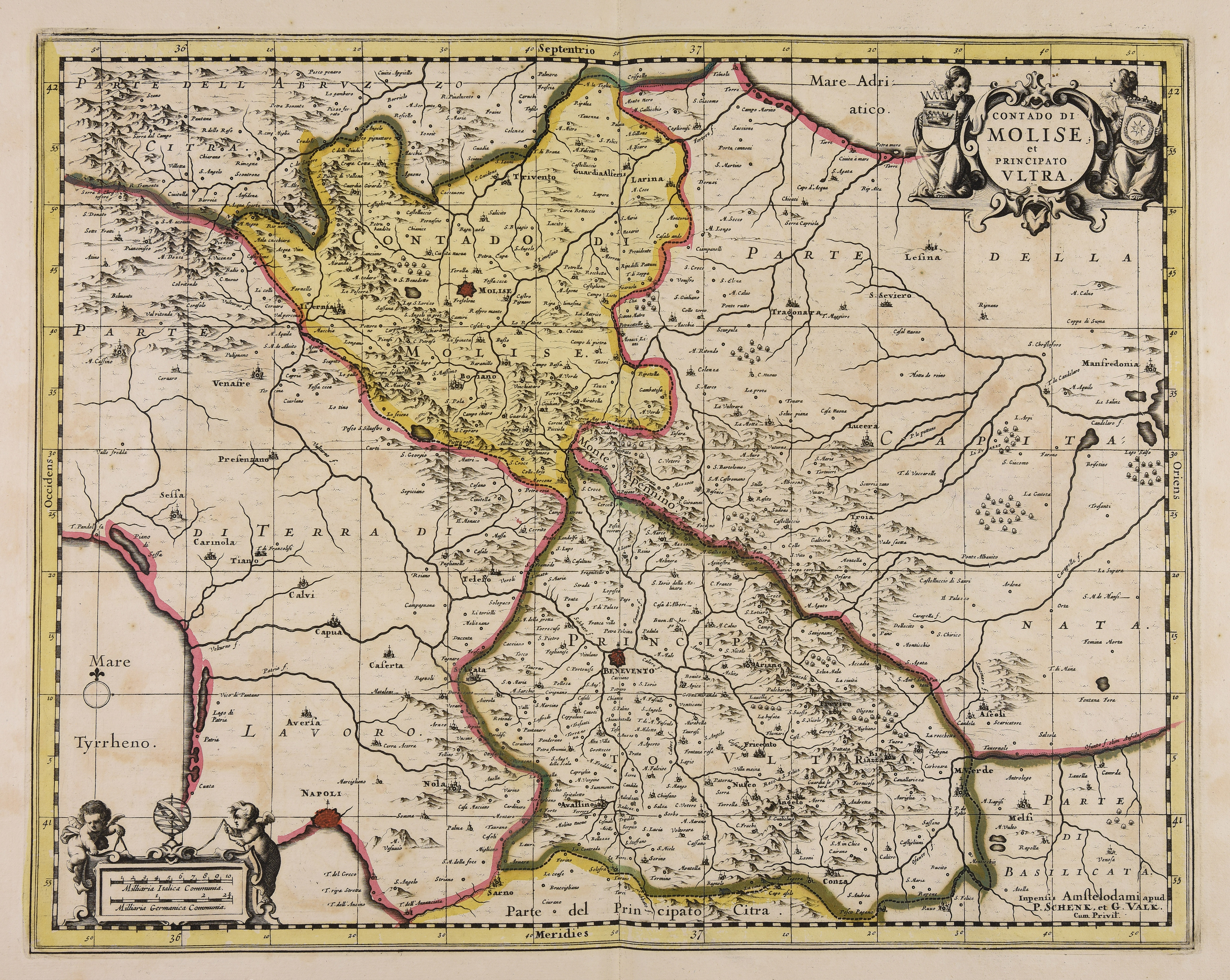 Calcografia; 375x478 mm; scala 1:370.000; pubblicata nel 1710 circa; (Cfr. Peter van der Krogt, Koeman's atlantes neerlandici, 't Goy-Houten, HES, 1997, vol. 5, in corso di pubblicazione)