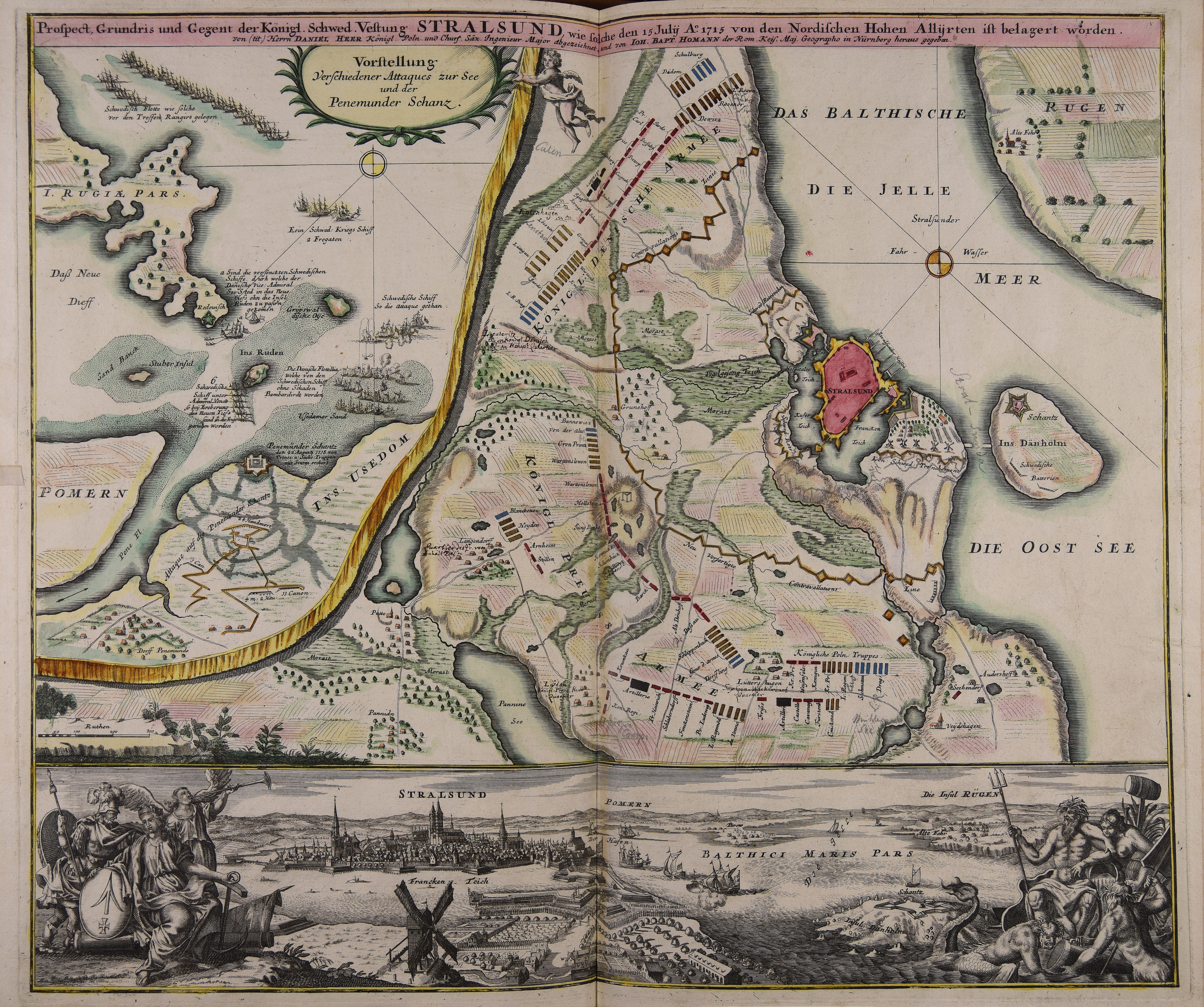 | Prospect, Grundris und Gegent der Königl. Schwed. Vestung Stralsund wie solche den 15 Julij A.° 1715 von den Nordischen Hohen All¨yrten ist belagert worden |