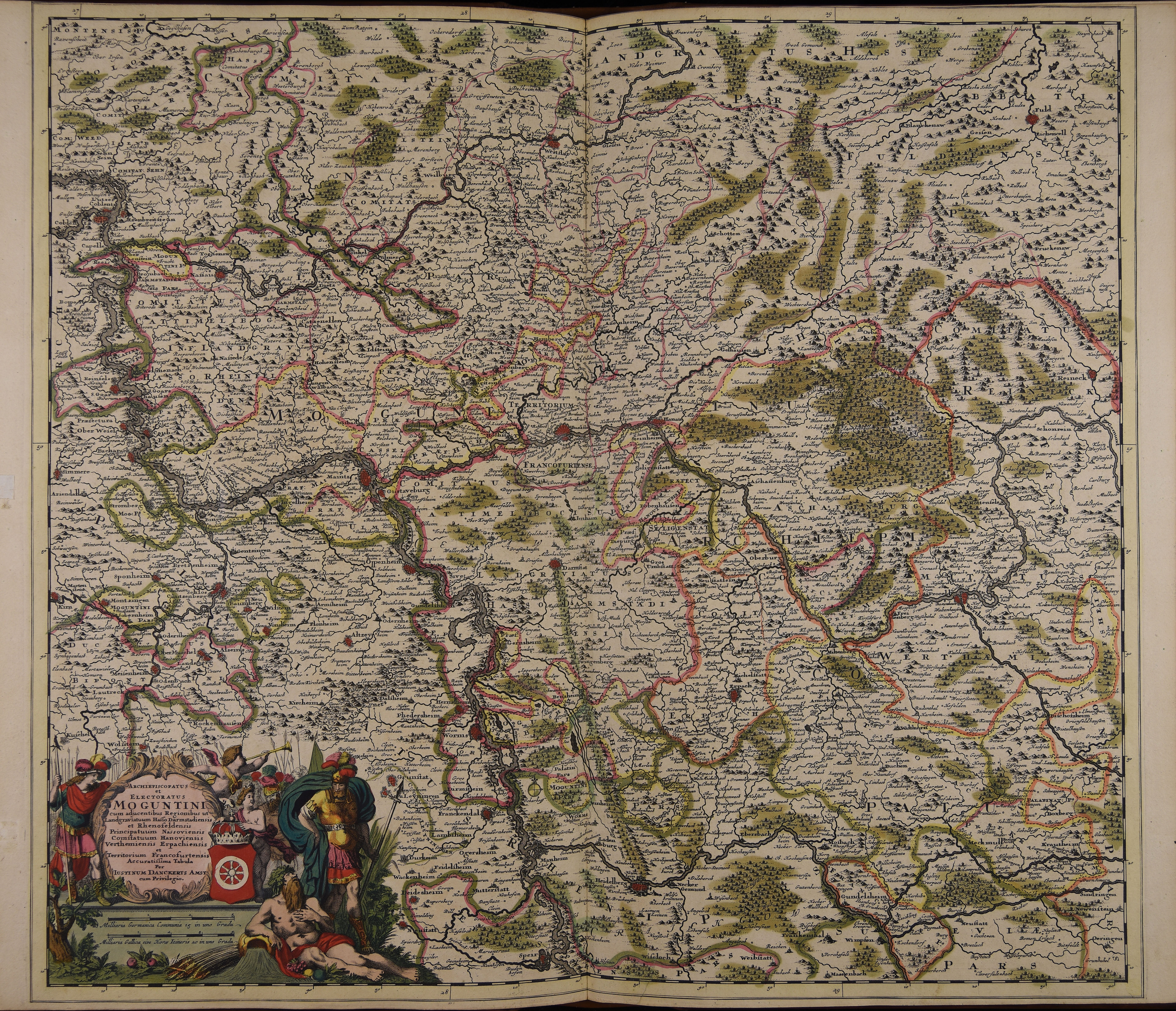 | Archiepiscopatus et electoratus Moguntini cum adjacentibus regionibus ut Landgraviatuum Hasso Darmstadiensis et Rhenofeldensis principatuum Nassoviensis comitatuum Hanoviensis Verthemiensis Erpachiensis et territorium Francofurtensis accuratissima tabula |