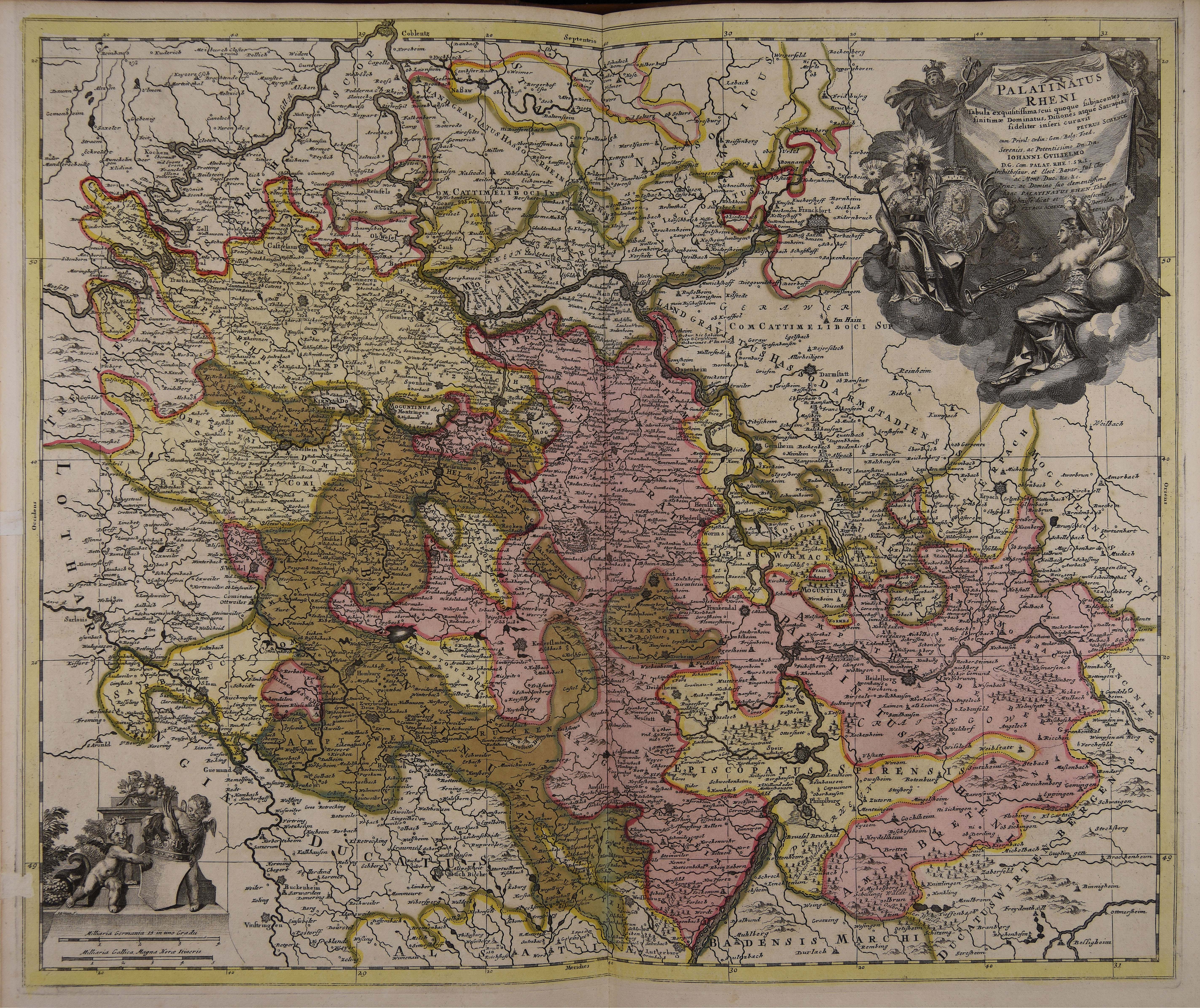 | Palatinatus Rheni tabula exquisitissima in cui quoque subjacentes ac finitimae dominatus ditiones atque satrapias fideliter inseri curavit |