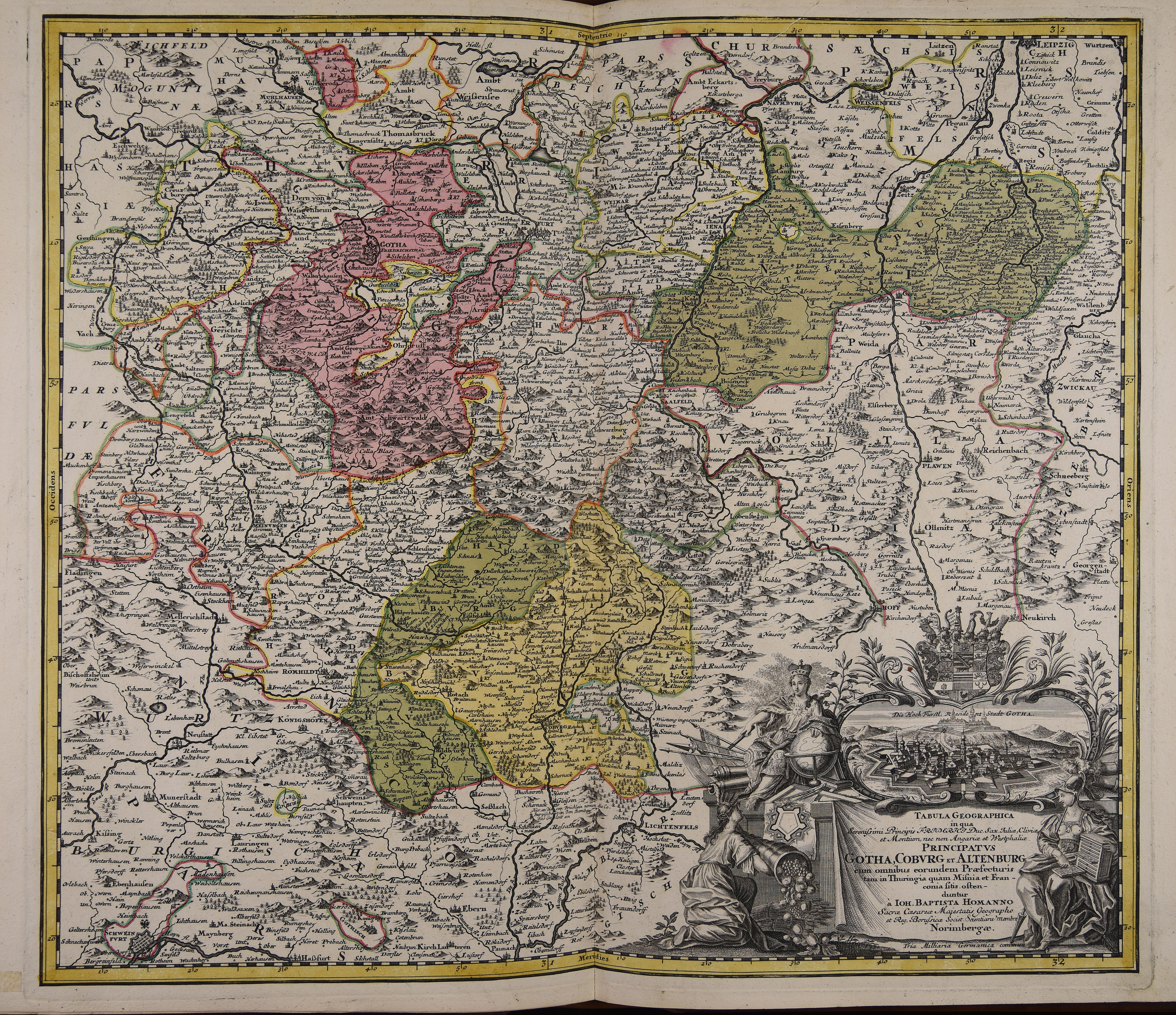 | Tabula geographica in qua serenissimi principis Friderici .... principatus Gotha, Coburg et Altenburg cum omnibus eorundem praefecturis tam in Thuringia quàm Misnia et Franconia sitis ostenduntur |