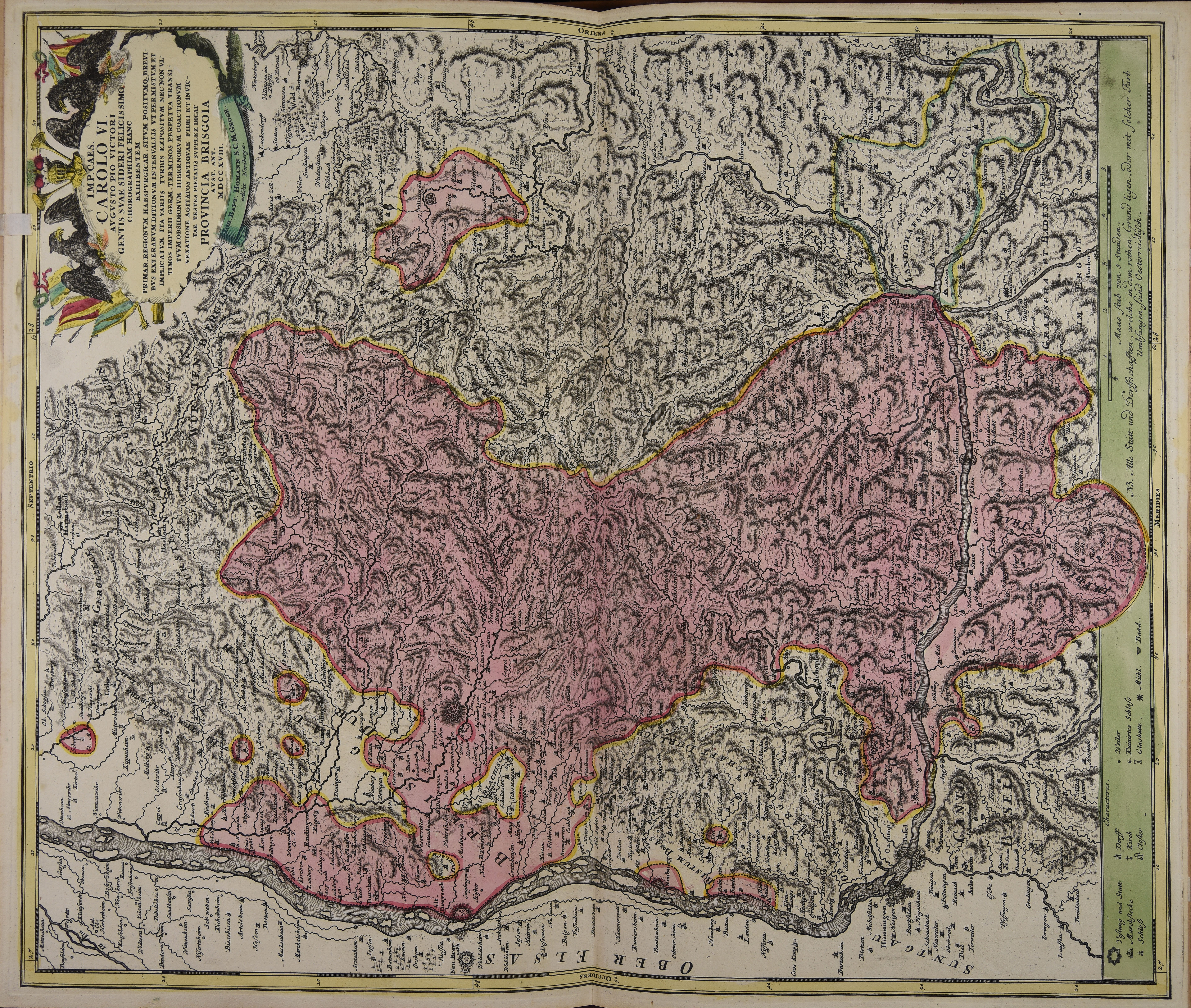 | Imp. caes. Carolo VI Augusto Pio Victori gentis suae sideri felicissimo chorographiam hanc exhibentem primar. regionum Habspurgicar. situm positumque breuibus exterarum ditionum interuallis ... dicat Prouincia Brisgoia Aust Ant. Ioh. Bapt. Homann S.C.M. |