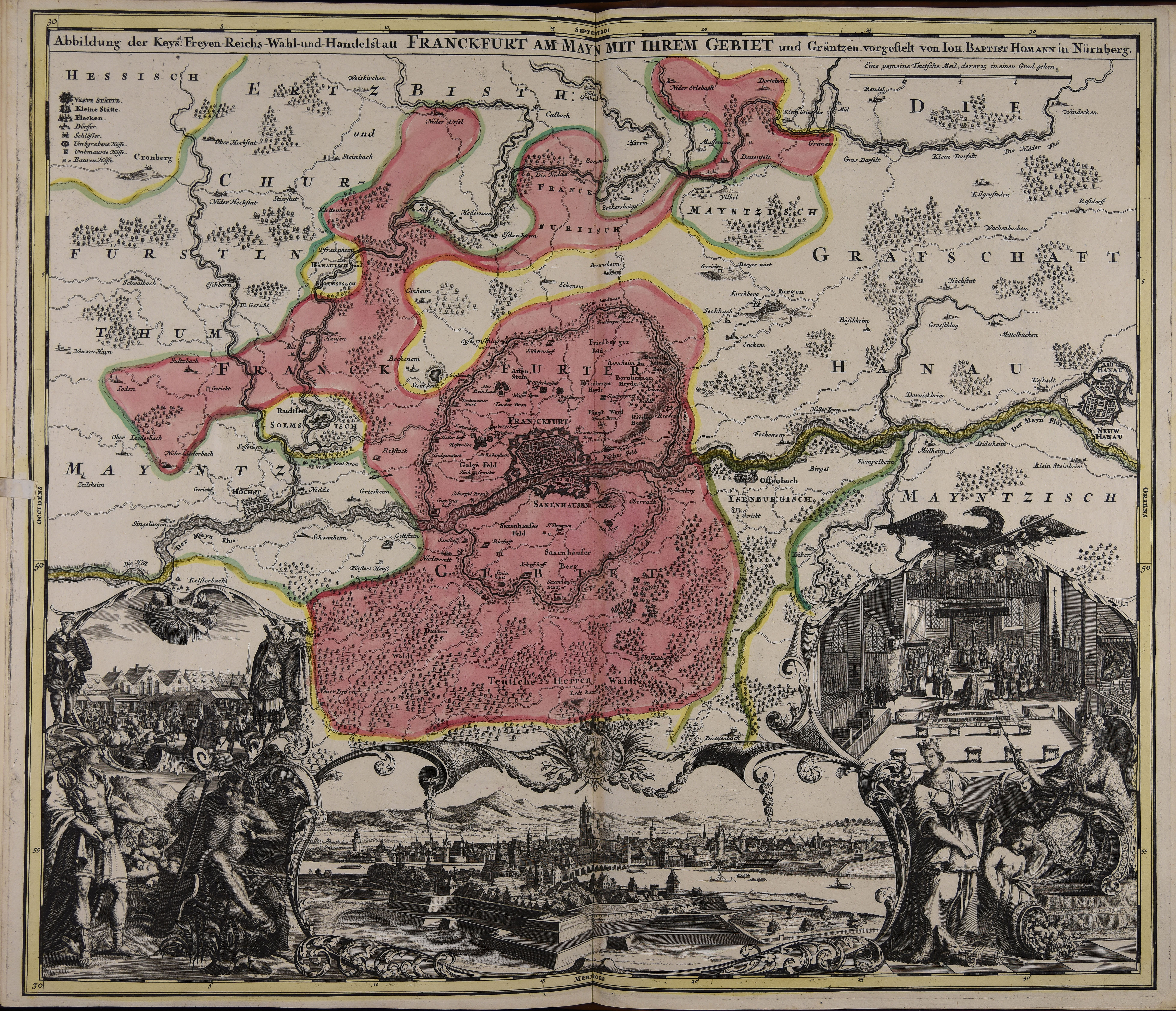 | Abbildung der Keys.rl-Freyen-Reichs-Wahl-und-Handelstatt Franckfurt am Mayn mit ihrem Gebiet und Gräntzen vorgestelt |