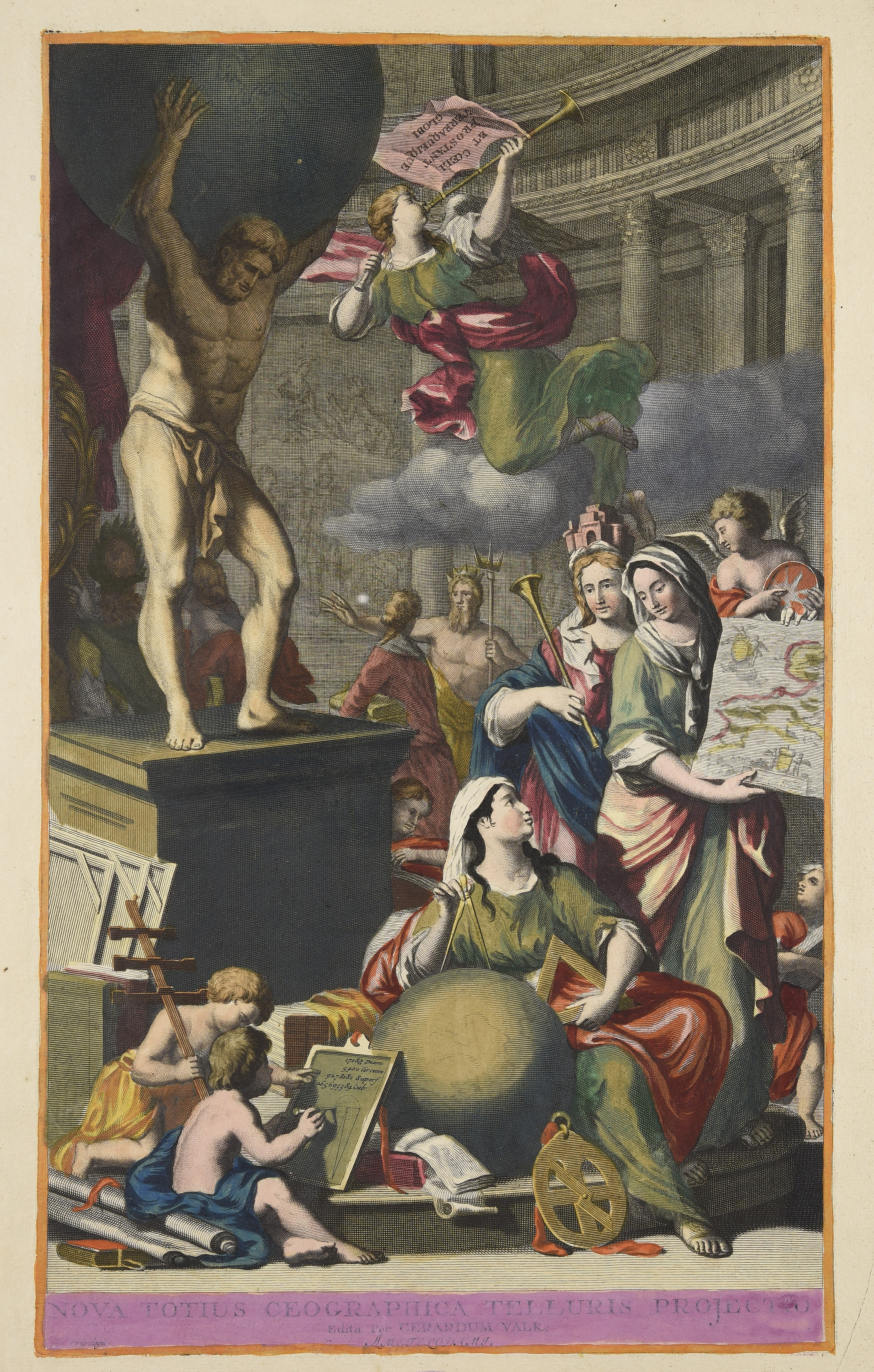 Calcografia; 530x320 mm; frontespizio di Atlantis sylloge compendiosa, Amsterdam, Valk, 1702 circa; titolo e note tipografiche originali coperti