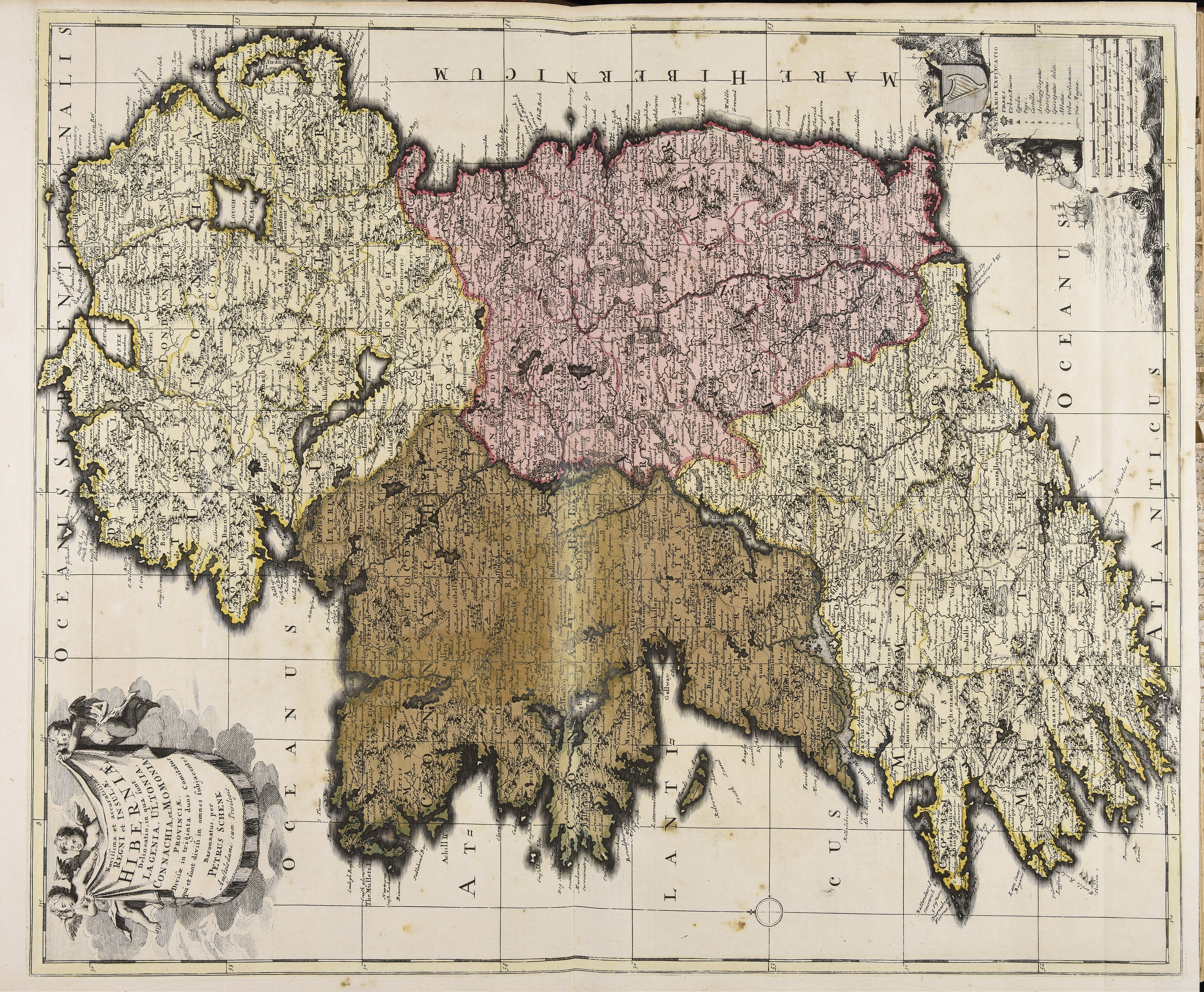 | Novissima et accuratissima regni et insulae Hiberniae delineatio : in qua sunt Lagenia, Ultonia, Connachia et Momonia provinciae : divisae in triginta duos comitatus qui et sunt divisi in omnes subjacentes baronnatus |